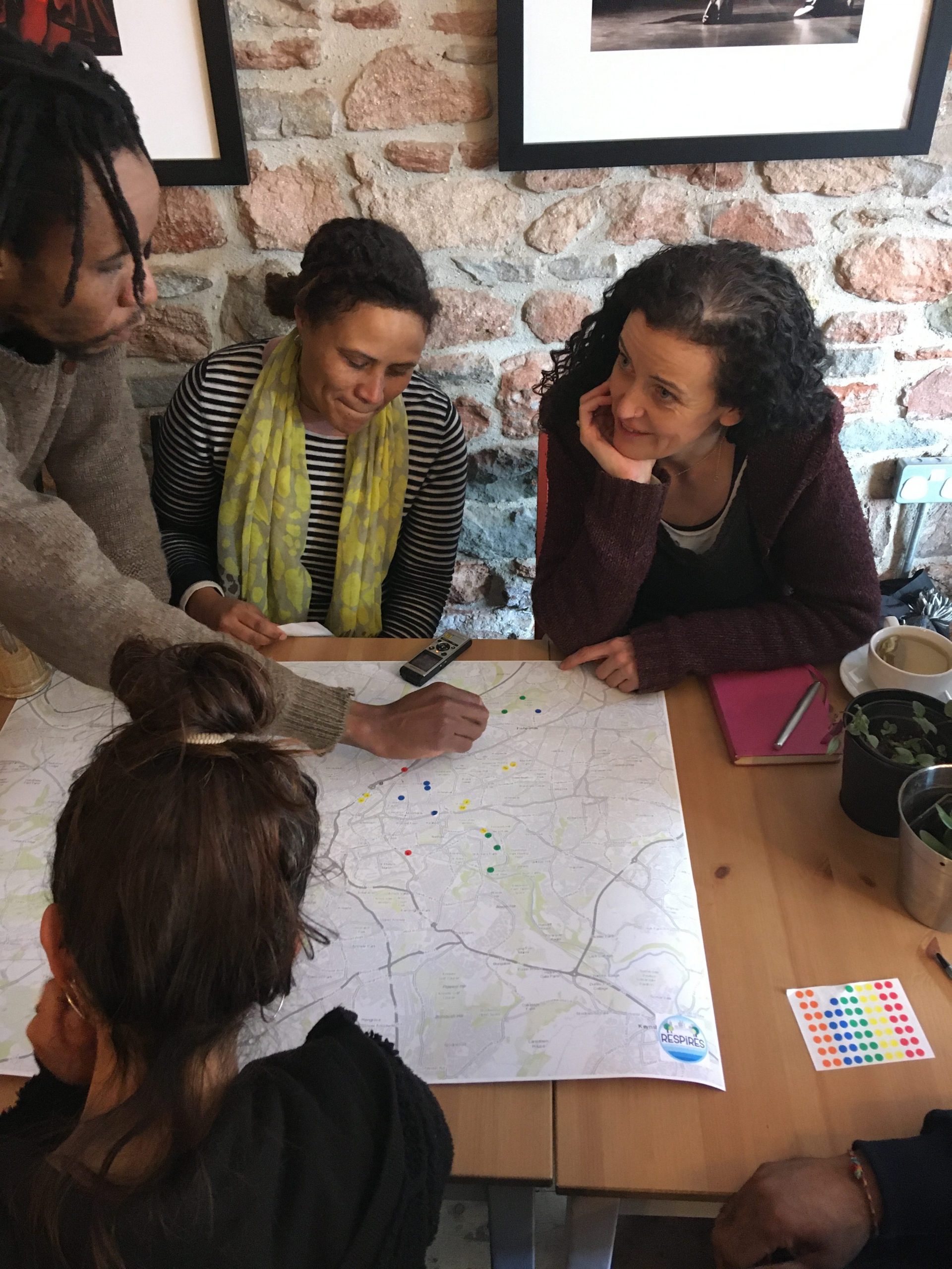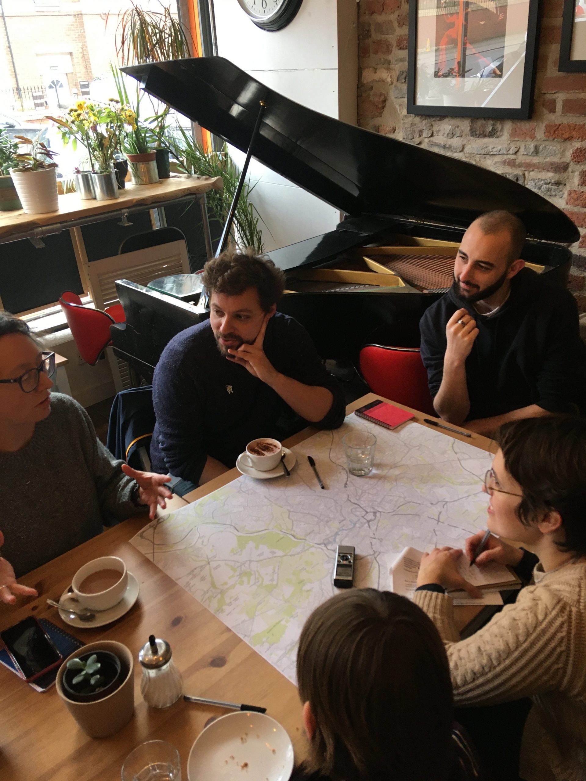 Field Workshops – During the first workshops we undertook walks in each location and monitored activity through human sensing (using our five senses) and drawing on digital tools such as the Hush City app, taking field notes and photographs and completing a participatory mapping exercise.