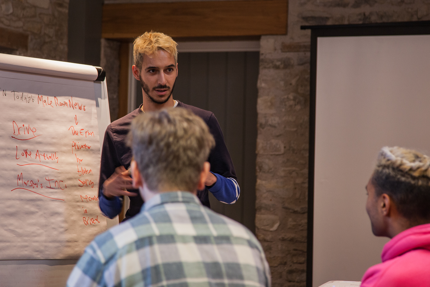 The Male Room took place in 2018. It was open to young men aged 18-30 who were aspiring entrepreneurs or who wanted to focus on personal development. During a residential retreat at Folly Farm we supported them to develop creative skills and practical knowledge of entrepreneurship, and explore and challenge ideas about masculinity in their industry. They also received professional mentoring and coaching.